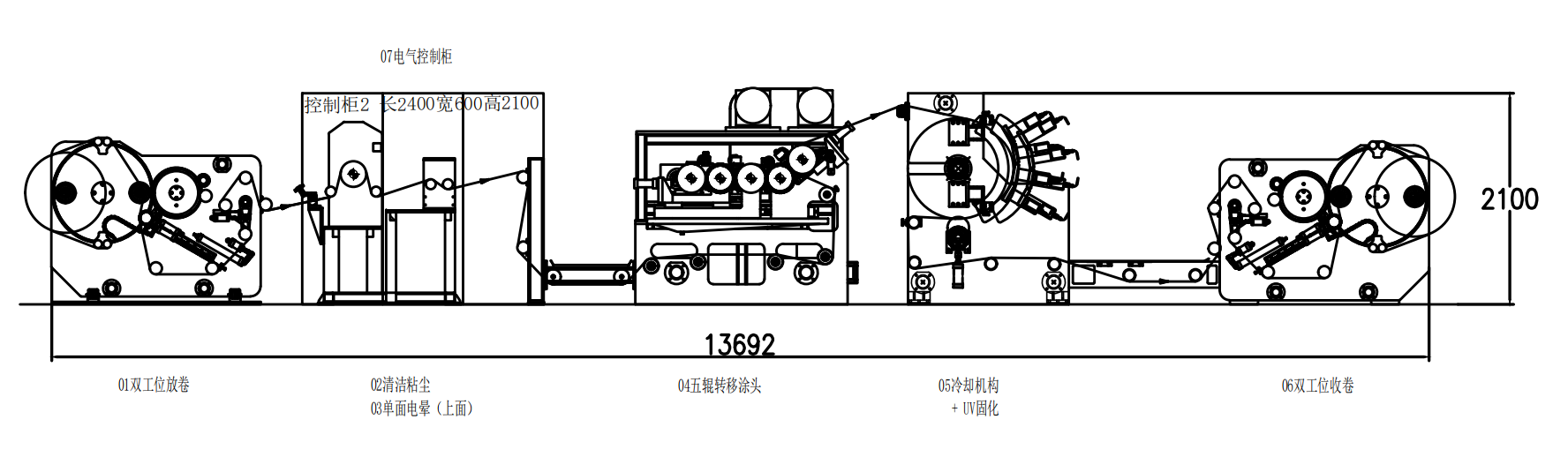 UV離型涂布機,輥筒寬度L=1750mm,線速度300m/min
